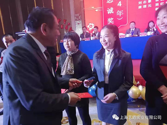 艺迈的发展中也离不开我们员工的无私奉献。在年会现场,董事长和各高管为公司老员工进行颁奖,真诚感谢多年来的一路相伴。