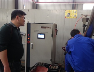 在蒋总的陪同下,港仪水司胡经理、徐经理逐个参观了我司电控车间、水泵生产车间和成套车间,对我司的生产加工技术非常感兴趣,并在展厅重点参观了无负压供水设备。