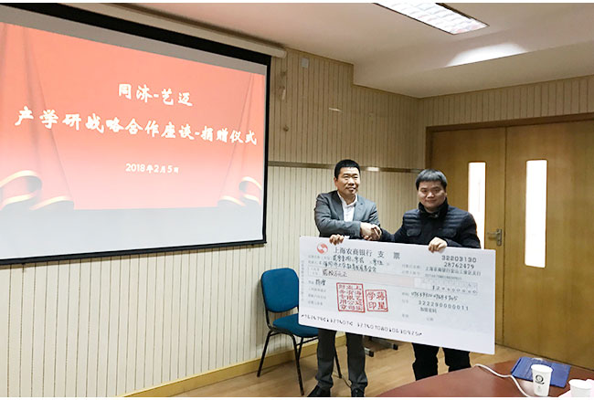 2018年2月5日上午10时30分,同济-艺迈产学研战略合作座谈与捐赠仪式在同济大学环境科学与工程学院明净楼一楼举行。环境学院徐斌副院长、高乃云教授、于水利教授、赵由才教授及办公室朱虹老师、黎雷老师等多位教授、教师,以及艺迈董事长蒋星学先生、副总经理李炳云先生等公司代表均出席本次仪式。