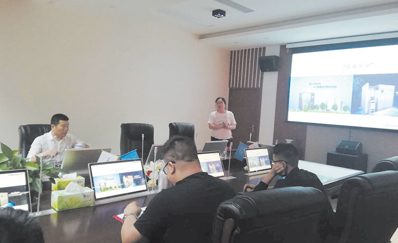 市场部总监李小皎对餐厨设备配套污水处理系统和除臭系统相关内容做了培训,让大家更全面了解公司产品的同